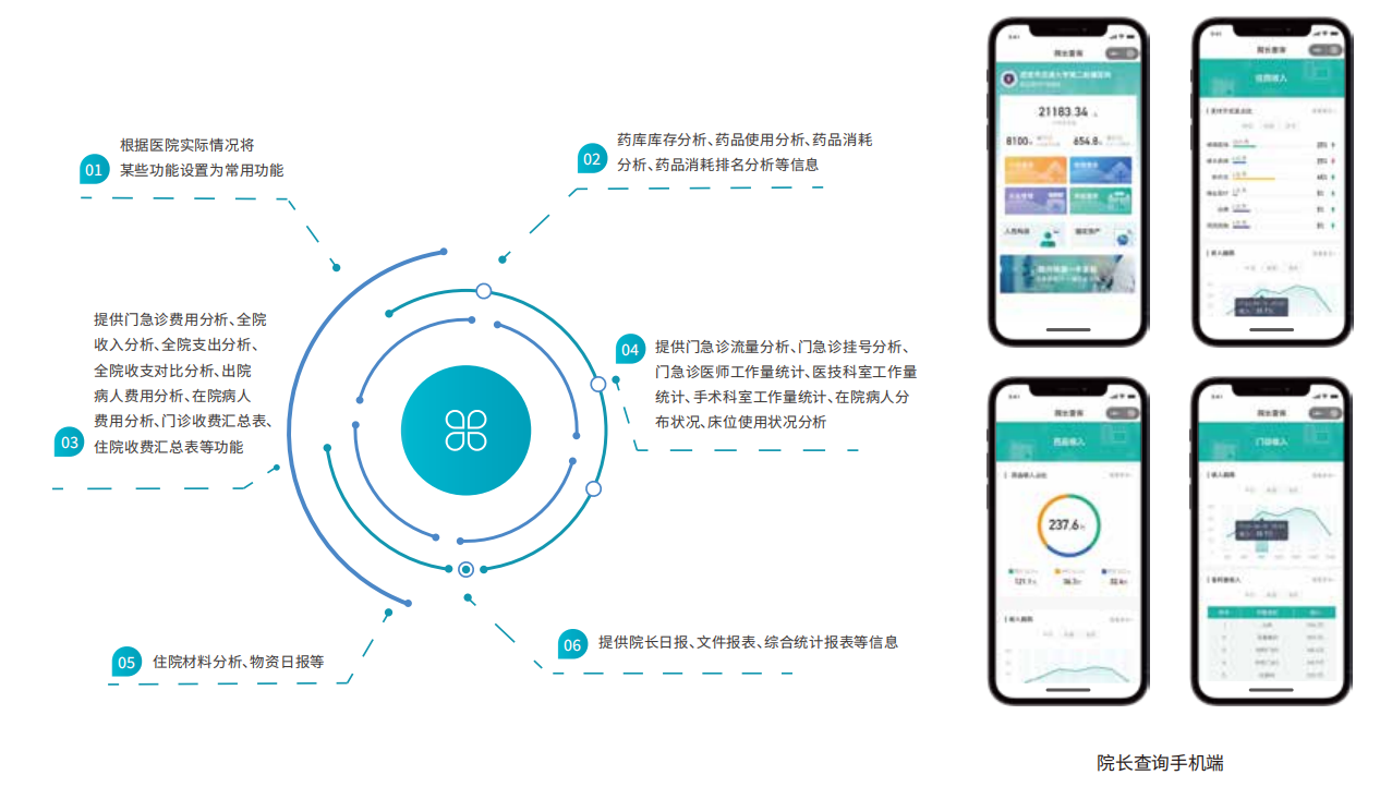 可以实现对医院信息管理系统 产生的数据进行集中有针对性的、 且符合业务规则的分类和工。让院长更清楚的了解整个医院的运行情况,进而为院长决策、了解医院工作情况提供多方面的参考数据。 最终实现医院资源的合理配置,提高医院的运行效率。